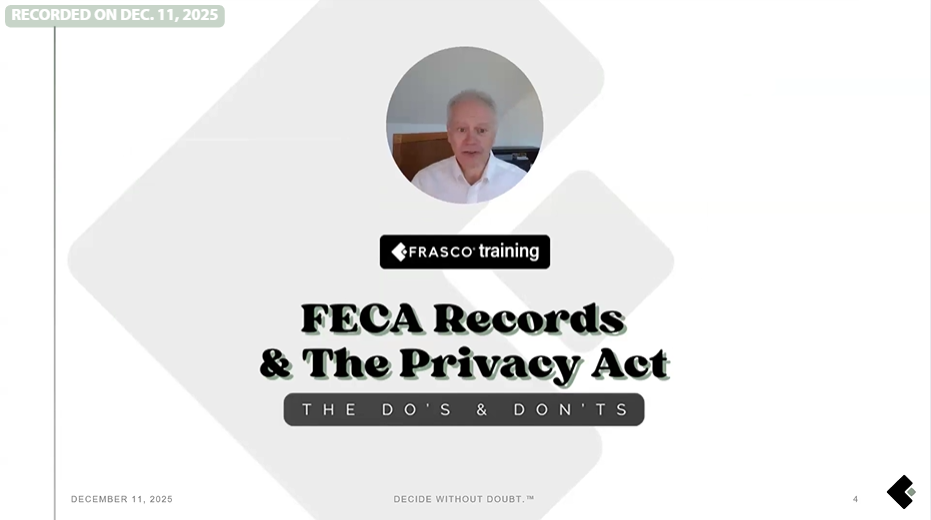 This course is an in-depth session on the proper handling of Federal Employees’ Compensation Act (FECA) records under the Privacy Act. This webinar will cover essential compliance practices and provide practical guidance to ensure confidentiality and accuracy when responding to record requests.