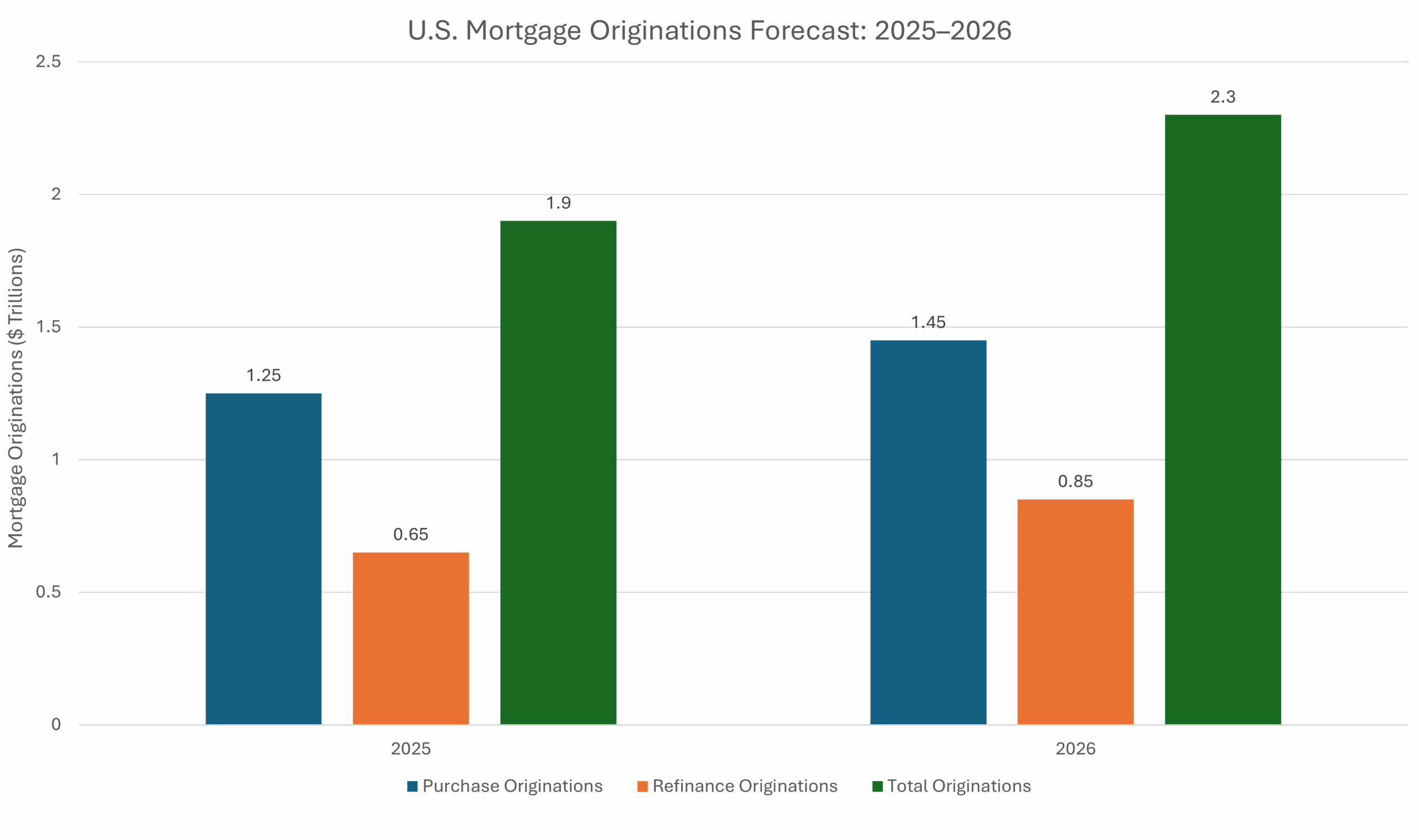 Early 2026 is expected to bring increased activity across the US mortgage market. Lower interest rates and improved housing inventory continue to support both purchase and refinance demand. According to Fannie Mae, home sales may exceed 5 million in 2026, representing nearly a 10% increase over 2025. (Source: businessinsider.com)